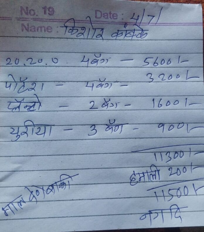 यासोबतच, बाजारभावाच्या तुलनेत जास्त दराने खते विकण्याचे प्रकार घडत असून, शेतकऱ्यांना नको असलेली खते जबरदस्तीने दिली जात असल्याच्या तक्रारी आहेत. आणखी गंभीर बाब म्हणजे, विक्री करताना शेतकऱ्यांना अधिकृत चलन (पक्का बिल) न देता फक्त कोऱ्या कागदावर रकमेचा उल्लेख करून ‘कच्चा बिल’ दिले जात असल्याचा प्रकार समोर आला आहे. त्यामुळे शेतकऱ्यांकडे कोणताही अधिकृत पुरावा राहत नाही, आणि भविष्यात गैरव्यवहार सिद्ध करणे अशक्य होते.